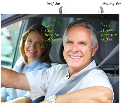 When you have one deaf ear that is unaidable you may hear pretty well in one-to-one conversation in quiet, or when the person speaking is on your better side, but you probably have difficulty when conversation originates on the side of the poor ear. People with this problem become accustomed to positioning themselves so that the poor ear is away from the speaker.